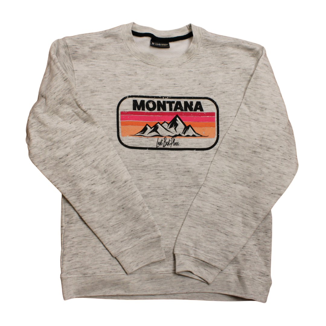 Light gray/white crew. Made of 60% cotton/40% polyester.